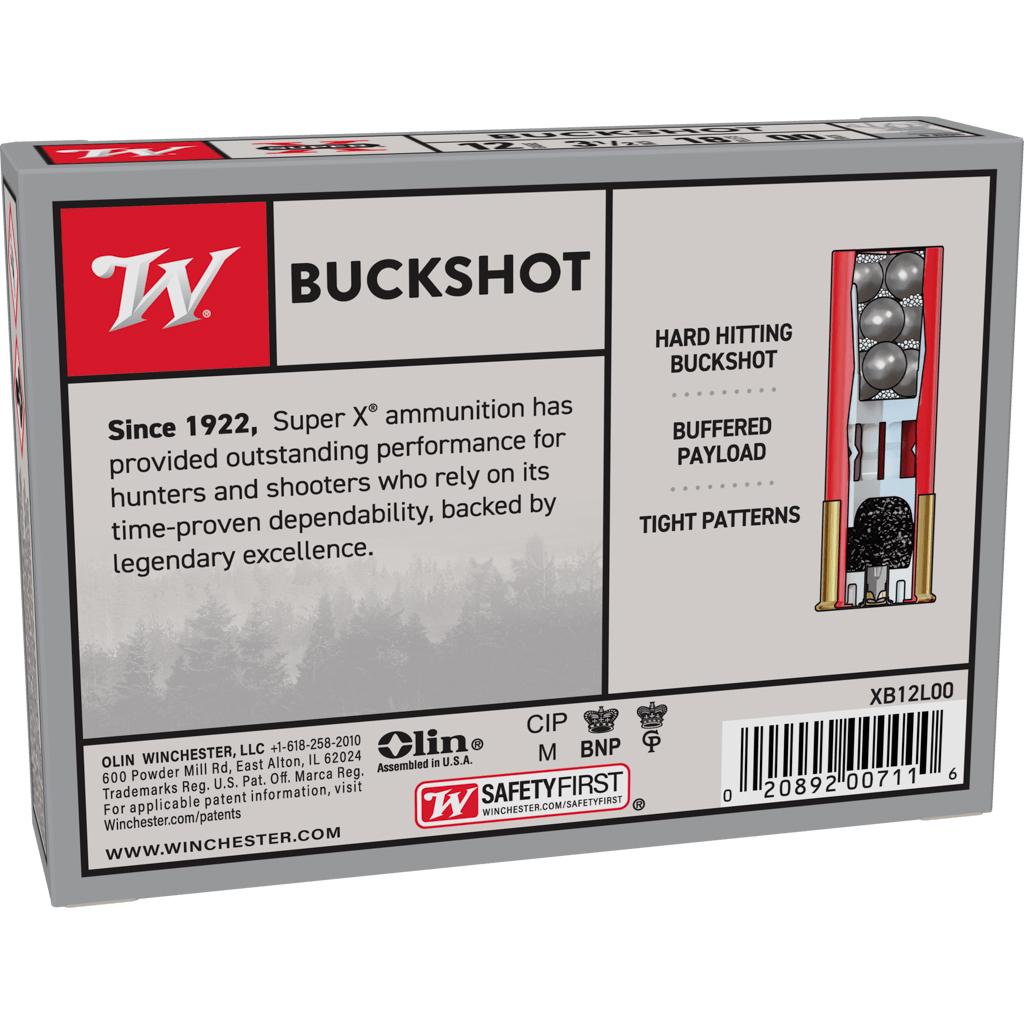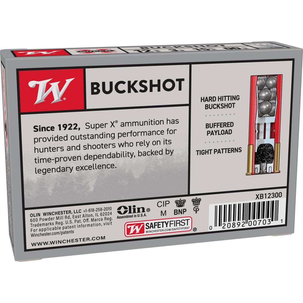 Winchester Super-X Buckshot Shotshells 12 ga 2-3/4" 1325 fps #00 5/ct