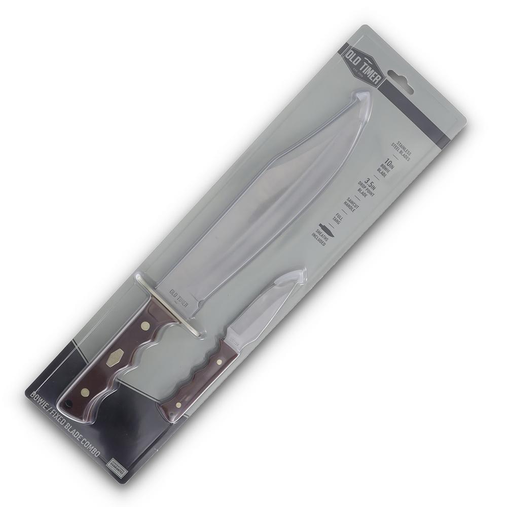 Old Timer Bowie Fixed Blade Combo 10" Bowie Blade 3-1/2" Skinner Blade Brown